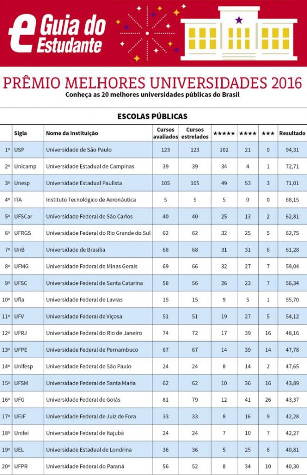 Conheça as 20 melhores universidades públicas do País