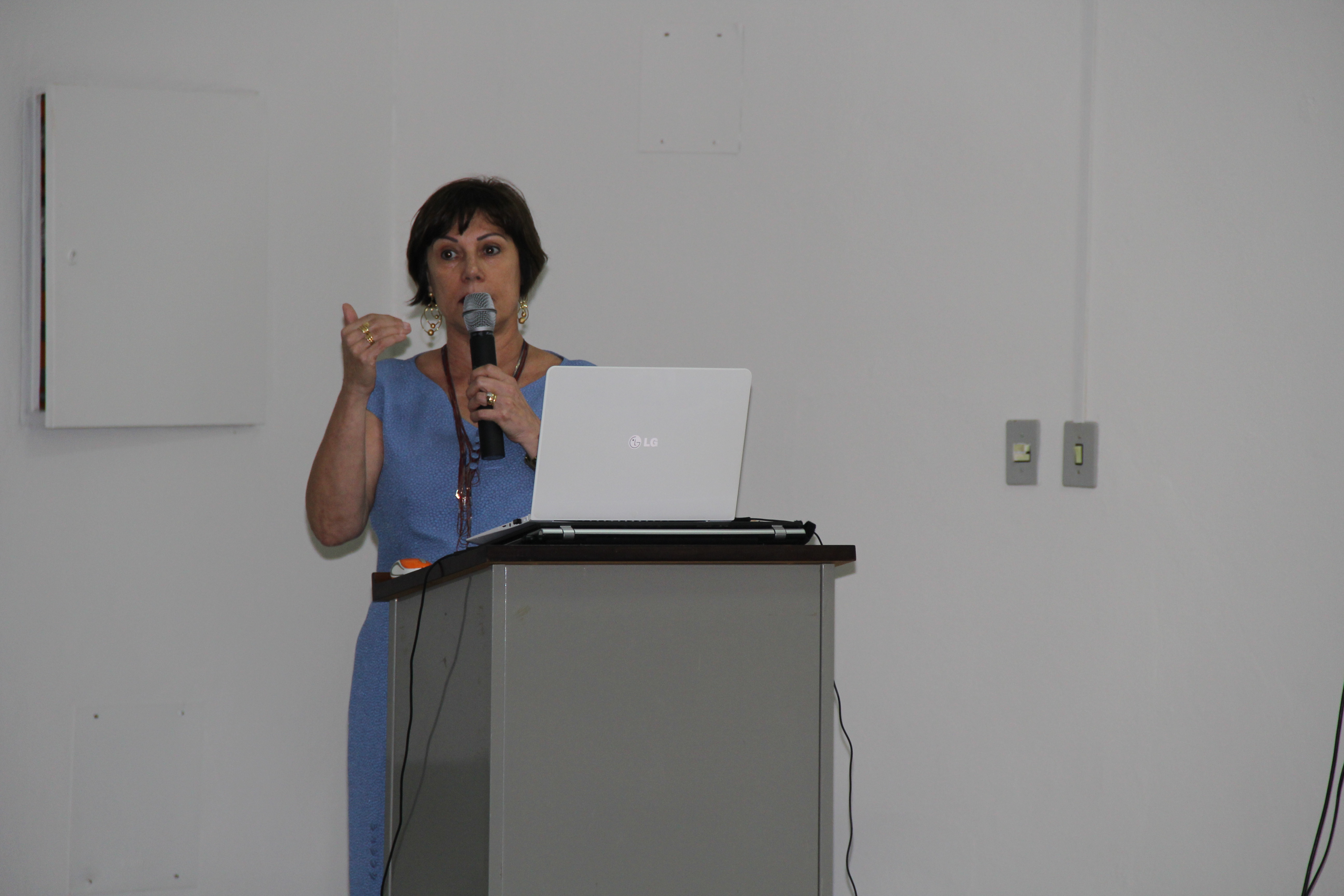 A coordenadora da área de Ciência dos Alimentos na Capes, Maria Ângela de Almeida Meirelles, durante sua palestra[/caption]