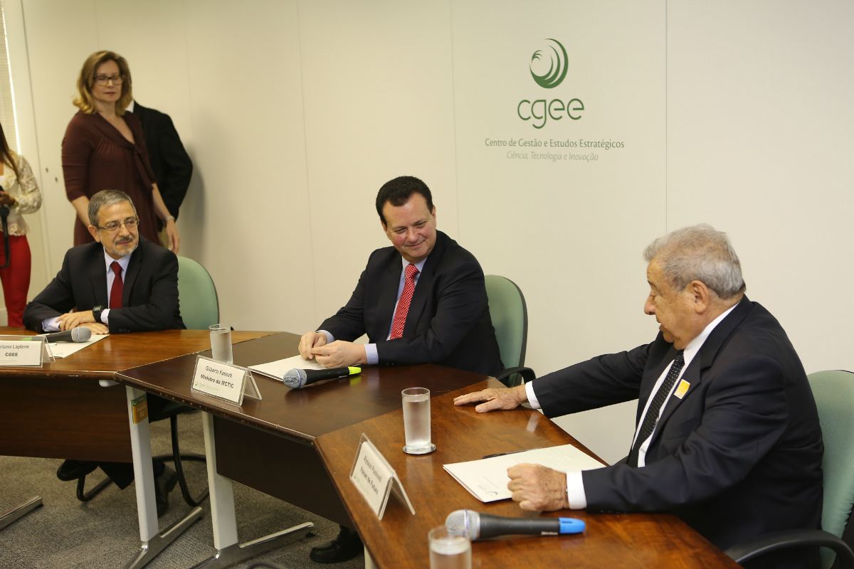 Ministro Gilberto Kassab participou de reunião no CGEE sobre a plataforma de informações científicas, na terça-feira 13/12. Crédito: Ascom/MCTIC[/caption]
