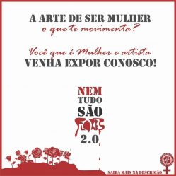 Mulheres interessadas em participar da exposição devem enviar um e-mail até o dia 3/3 para Este endereço de email está sendo protegido de spambots. Você precisa do JavaScript ativado para vê-lo. contendo: nome completo; idade; profissão; foto do objeto a ser exposto (pode ser mais de um, sendo ele foto, artesanato, poema etc); nome do objeto; descrição do objeto (material utilizado, por exemplo); um pequeno texto contando a sua história como artista (texto este que acompanhará seu objeto na exposição).