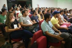 A primeira palestra do evento foi "Papel da Pesquisa numa empresa florestal", ministrada por Hélder Bolognani Andrade, da Vallourec Florestal. Hélder formou-se na Instituição (Esal) e iniciou dizendo ter orgulho de vir à Universidade.[/caption]