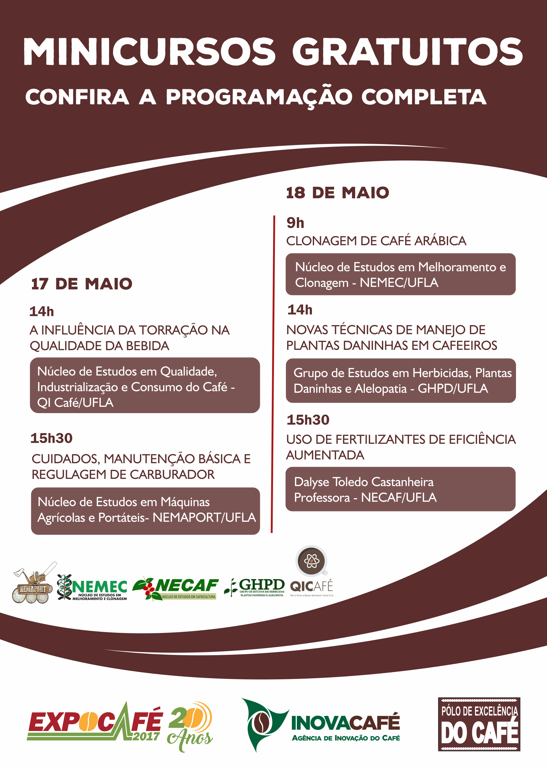 Durante os três dias do evento, a Universidade Federal de Lavras (UFLA) e outras instituições, demonstrarão em minicursos, tecnologias que influenciam na qualidade do produto final. Este ano a área da feira foi ampliada para 12,5 mil m². As principais ruas foram pavimentadas para melhoria da estrutura do evento e montagem de estandes dos 150 expositores. Pela primeira vez, a Associação Comercial e Agroindustrial de Três Pontas irá levar seis empresas locais das áreas de manutenção de tratores, seguradora, embalagens, mecanização agrícola e moda.