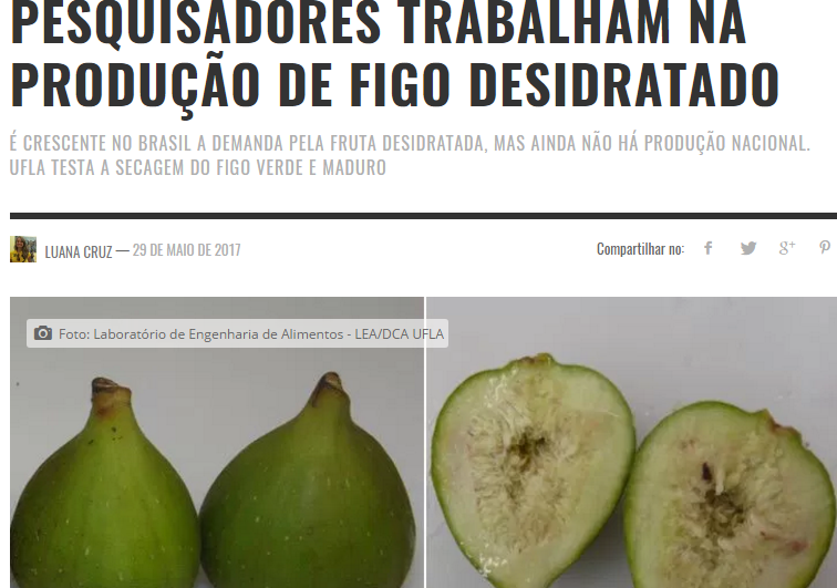 A produção de figo desidratado como alternativa de consumo da fruta no país foi recentemente abordada no blog. O tema faz parte da pesquisa de mestrado de Ronaldo Elias de Mello Júnior no Programa de Pós-Graduação em Ciência dos Alimentos, cuja a orientação é do professor Jefferson Luiz Gomes Correa.