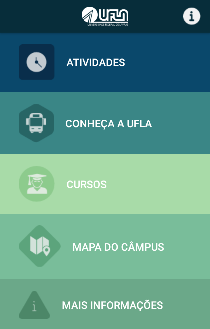 O aplicativo do UFLA de Portas Abertas já está disponível. Para baixar basta acessar o Play Store e procurar por UFLA de Portas Abertas (ou clique aqui para acessar o link). Por meio do aplicativo os participantes poderão conhecer melhor os cursos ofertados pela Universidade, obter informações gerais sobre a vida acadêmica, além de acessar um mapa para melhor orientá-los.