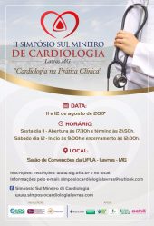 Nos dias 11/8 e 12/8, o Departamento de Ciências da Saúde (DCS) da UFLA, em parceira com a Sociedade Sul Mineira de Cardiologia, realiza o II Simpósio Sul Mineiro de Cardiologia.