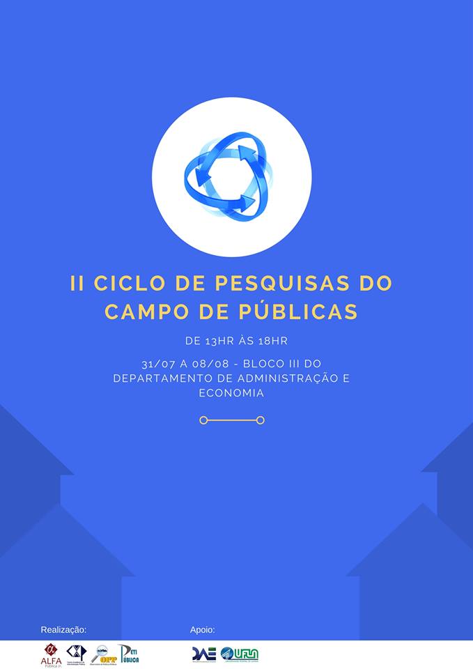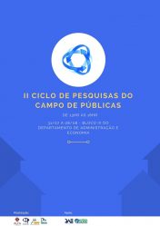 Entre os dias 31/7 e 8/8 será realizado na Universidade Federal de Lavras (UFLA) o II Ciclo de Pesquisas do Campo de Públicas, organizado pela Alfa Pública Jr., Centro Acadêmico de Administração Pública (Cenaap), Observatório de Políticas Públicas, Peti Pública e representantes do Departamento de Administração e Economia (DAE/UFLA).