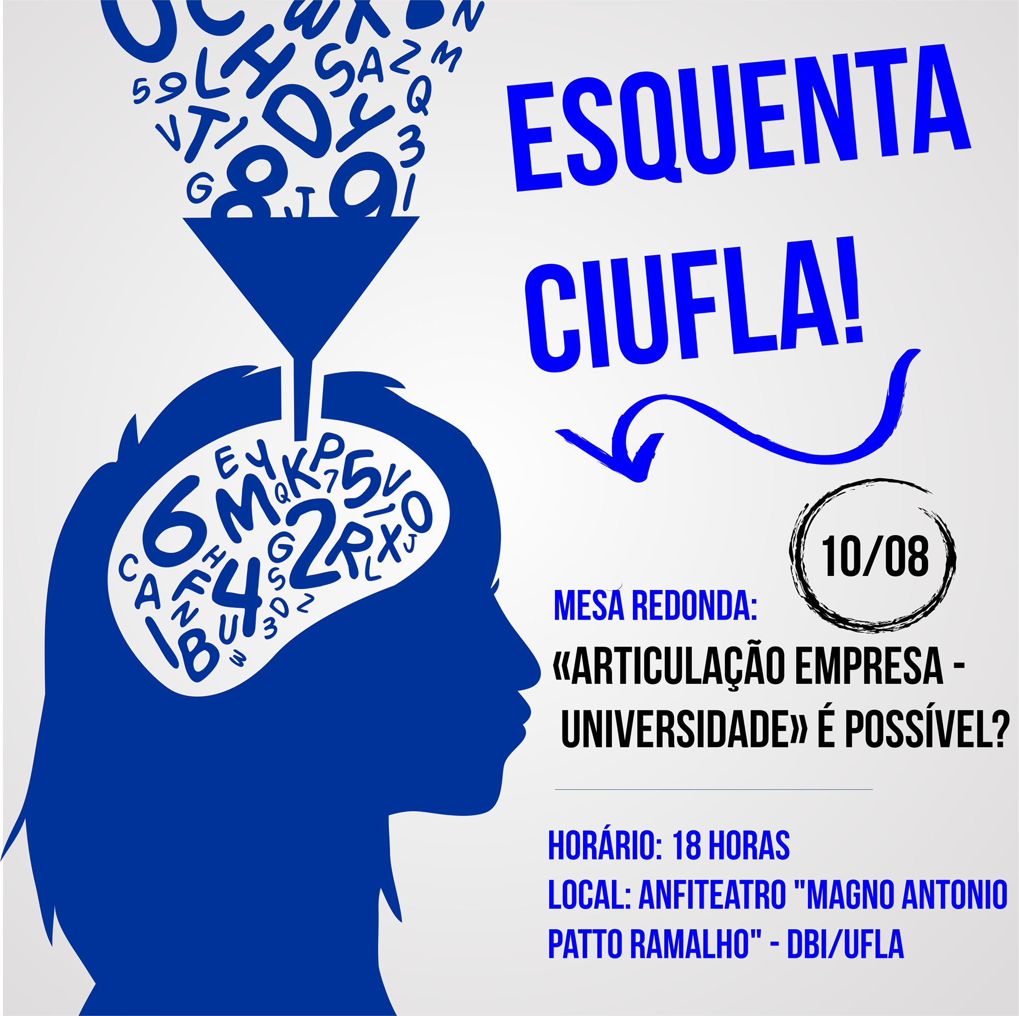 A segunda atividade do projeto “Esquenta Ciufla”, a mesa-redonda “Articulação empresa-universidade: é possível?”, será nesta quinta-feira, 10, às 18h, no Anfiteatro Magno Antonio Patto Ramalho. O professor Luiz Carlos Alves de Oliveira, da Universidade Federal de Minas Gerais (UFMG), será o prelecionista. Participarão do debate o professor Fellipe Guerra, do Departamento de Direito da UFLA (DIR) e o consultor do Sebrae-MG e membro do Ecossistema de Empreendedores Vale dos Ipês, Antônio Alberto de Carvalho Júnior.