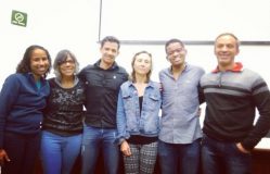 Foto com a equipe organizadora (esq p/ dir): Silvana Aviar dos Santos (UFSC); Célia Magalhães (UFMG); Welbert; Adriana Pagano (UFMG); Guilherme Lourenço (UFMG), Wanderson Samuel.[/caption]