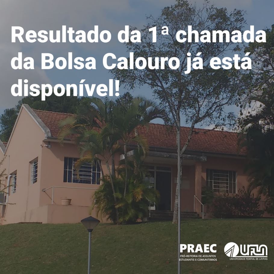 A Pró-Reitoria de Assuntos Estudantis e Comunitários da UFLA (Praec) publicou o resultado final da seleção de bolsistas do Programa Bolsa Calouro. Os candidatos selecionados devem acessar o SIG, na área de Editais de Bolsas Institucionais, no período entre 27 e 30 de outubro. Nesse endereço, precisam manifestar o interesse pela vaga, confirmar o Termo de Compromisso e cadastrar os dados bancários. O candidato convocado que não manifestar interesse pela vaga nesse prazo estabelecido será considerado desistente. O contrato terá vigência de 1º/11/2017 a 30/4/2018.