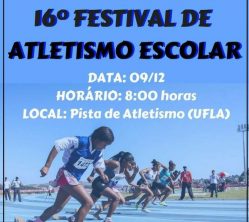 Neste sábado (9/12), a partir das 8h, a pista de atletismo da Universidade Federal de Lavras (UFLA) recebe mais uma edição do Festival de Atletismo Escolar. O evento é promovido pelos estudantes da disciplina de Esportes Individuais II, ministrada pelo professor Fernando de Oliveira, também idealizador do Projeto CRIA Lavras, apoio da Prefeitura Municipal e de empresas da cidade.