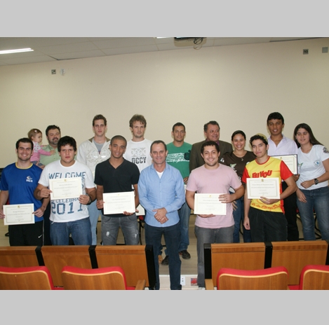 Na última sexta-feira (3), no Salão dos Conselhos, a seleção masculina de handebol da UFLA recebeu do reitor, professor Antônio Nazareno Guimarães Mendes, o certificado de reconhecimento ao desempenho da equipe na Liga do Desporto Universitário (LDU). Entre os dias 19 e 26 de junho, a seleção da UFLA vai representar Minas Gerais na fase nacional da competição, disputando com seleções do Sul,Sudeste e Centro-Oeste. Essa foi a primeira conquista da Universidade na Liga.