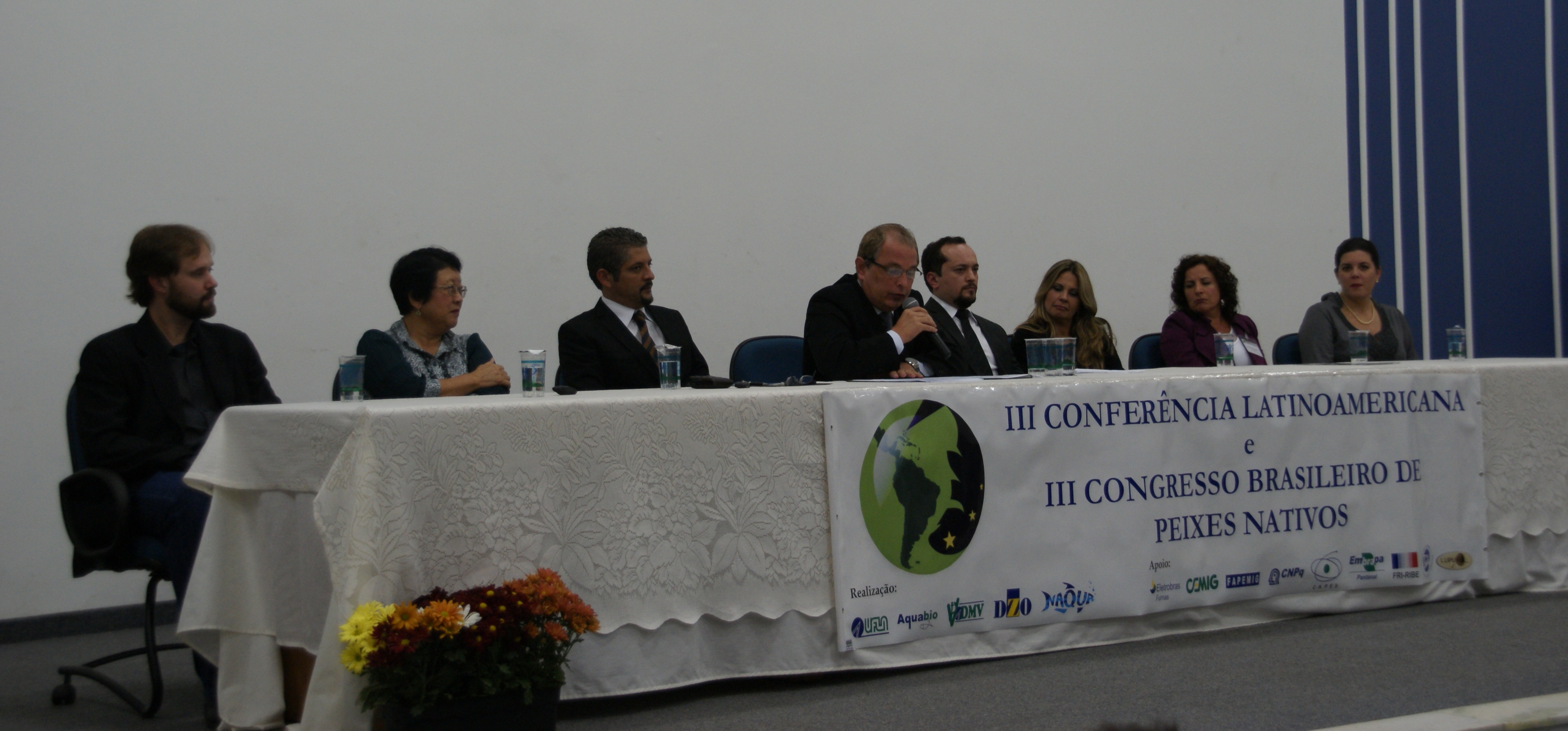 A abertura oficial da III Conferência Latino- Americana sobre Cultivo de Peixes Nativos e do III Congresso Brasileiro de Produção de Peixes Nativos foi realizada nessa quarta-feira (13), às 19 horas, no Salão de Convenções da UFLA. Na solenidade foi apresentada a palestra Magna “Projeto em Rede Aquabrasil”, pela coordenadora do projeto, Emiko Kawakami de Resende, prestigiada por diversas autoridades do segmento e por um grande número de participantes do Brasil e América Latina. As atividades programadas para a Conferência e Congresso continuam até sexta-feira (15), nas Naves I e II da Universidade. Na sexta-feira, às 8h30, haverá a abertura oficial do “I Encontro de Piscicultores”, no anfiteatro da Biblioteca.