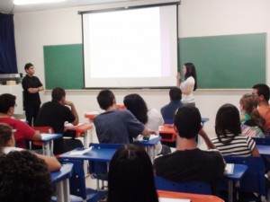 No dia 12 de março, estudantes de vários cursos de graduação iniciaram as atividades da disciplina GDE 124 – Língua Brasileira de Sinais (Libras). Esta foi uma aula especial: é a primeira turma da disciplina, que passou a ser oferecida na UFLA em 2012. As aulas são ministradas pela professora Fabrícia Console Meirelles, do Departamento de Educação (DED), em parceria com o professor Paulo Henrique de Lima Siqueira, do Departamento de Administração e Economia, intérprete.