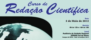Estão abertas as inscrições para o Curso de Redação Científica que será ministrado no Auditório da Unidade Regional da Epamig Sul de Minas, no Câmpus da Universidade Federal de Lavras (UFLA), no dia 5 de maio, das 8 às 12 horas e das 14 às 18 horas. São apenas 50 vagas.