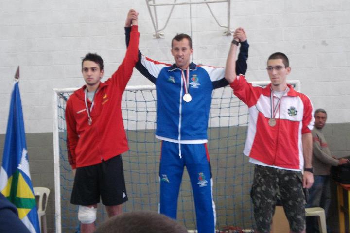 Pódio da categoria até 80 kg: Diego Ramos (prata), Henrique Precioso (ouro) e Rodrigo de Freitas (bronze)[/caption]