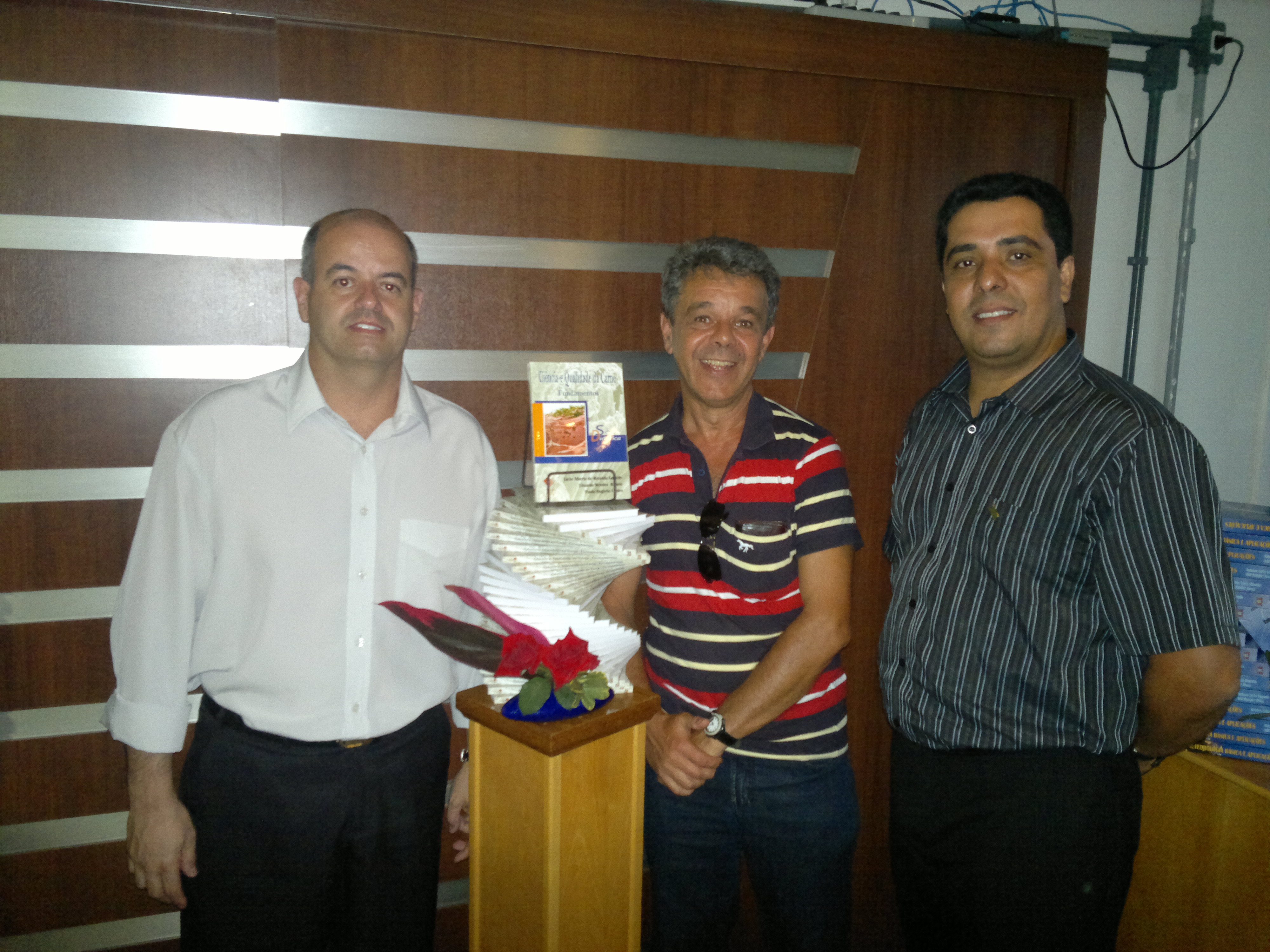 Professores Paulo Rogério, Lúcio Gomide e Eduardo Ramos (UFLA) na cerimônia de lançamento do livro na UFV[/caption]