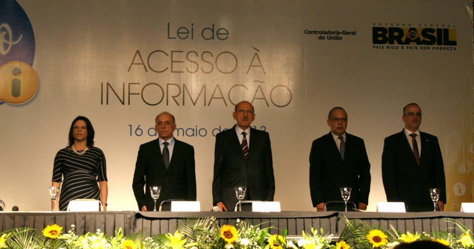 Mesa solene do seminário em comemoração ao primeiro ano da LAI, em Brasília Fonte: fanpage da CGU[/caption]