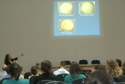A professora e pesquisadora da Universidade de Delaware, nos Estados Unidos, Angelia Seyfferth, ministrou uma palestra na segunda-feira (24) na UFLA sobre contaminação de arsênio na cultura do arroz. A palestra foi realizada no Anfiteatro Magno Antonio Patto Ramalho, no Departamento de Biologia (DBI), com o tema “Toxic compounds in our food: Arsenic contamination of rice and potential mitigation strategies”.