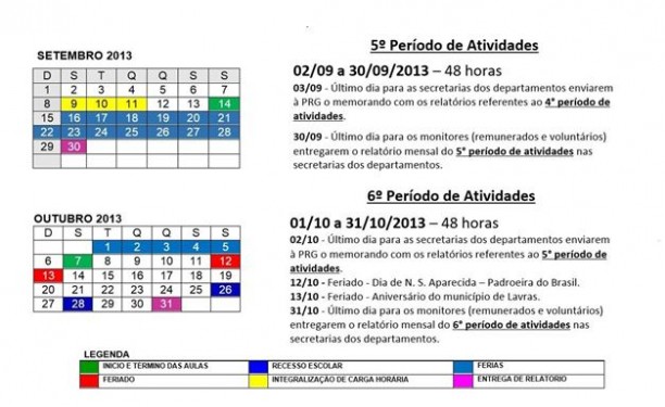 No caso do Programa de Bolsa Institucional de Ensino e Aprendizagem – submodalidade Ensino/MONITORIA, cada departamento deverá informar à PRG, impreterivelmente, até o dia 19/9/2013 (quinta-feira), a relação dos bolsistas que permanecerão no Programa.