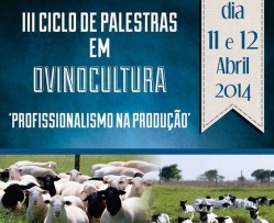 Produtores, profissionais e estudantes interessados em ovinocultura terão a oportunidade de se reunir no “III Ciclo de palestras em ovinocultura: profissionalismo na produção”, organizado pelo Grupo de Apoio à Ovinocultura (GAO), que tem sede no Departamento da Zootecnia (DZO) da Universidade Federal de Lavras (UFLA). O evento ocorrerá nos dias 11 e 12 de abril. As inscrições podem ser feitas a partir de hoje (1º de abril), na Cantina Central.