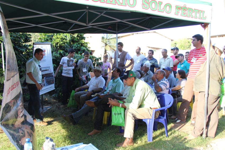 Durante a tarde, os cafeicultores participaram de um dia de campo, que ofereceu instruções sobre nutrição de plantas, pós-colheita do café, adubação nitrogenada, calagem, indução de resistência para plantas do cafeeiro e manejo de pragas.