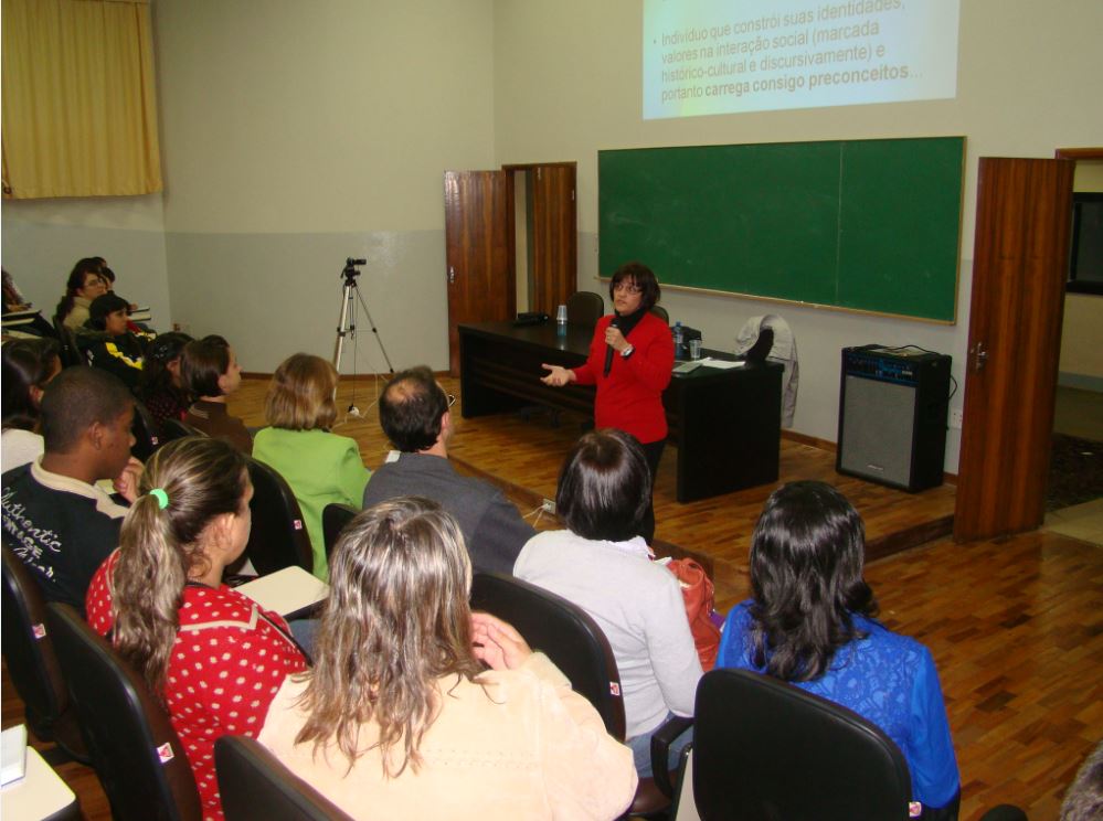 Na quinta-feira (5/6) a professora Cláudia Hilsdorf Rocha, do Instituto de Estudos da Linguagem da Universidade Estadual de Campinas (Unicamp - Campinas/SP), esteve presente no Anfiteatro do Departamento de Ciências Humanas da Universidade Federal de Lavras (DCH/UFLA) e fez uma apresentação aos alunos do curso de Letras, abordando a aprendizagem da língua inglesa no Ensino Fundamental.