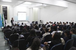 O coordenador geral da Associação Comunitária dos Bairros Jardim Glória e Campestres 1, 2 e 3, Samir Oliveira, foi o palestrante do primeiro Ciclo de Debates de Políticas Públicas. O evento ocorreu na última quinta-feira (5), no Auditório do Departamento de Ciência da Computação (DCC), promovido pelo curso de Administração Pública.
