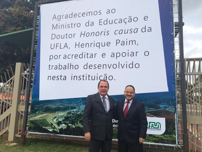 O ministro Henrique Paim recebeu a pelerine da Universidade Federal de Lavras com a inscrição da maior honraria concedida pela Universidade – Doutor Honoris Causa. O título foi outorgado pelos membros do Conselho Universitário em novembro de 2013, quando Paim era secretário-executivo do Ministério da Educação.