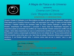 A equipe do projeto A Magia da Física e do Universo apresenta, no “Cinema com Ciência” desta sexta-feira (5/9), o filme “Einstein e Eddington”. O filme será o primeiro do ciclo que se inicia nesta semana, destinado a tratar da “biografia de cientistas”.