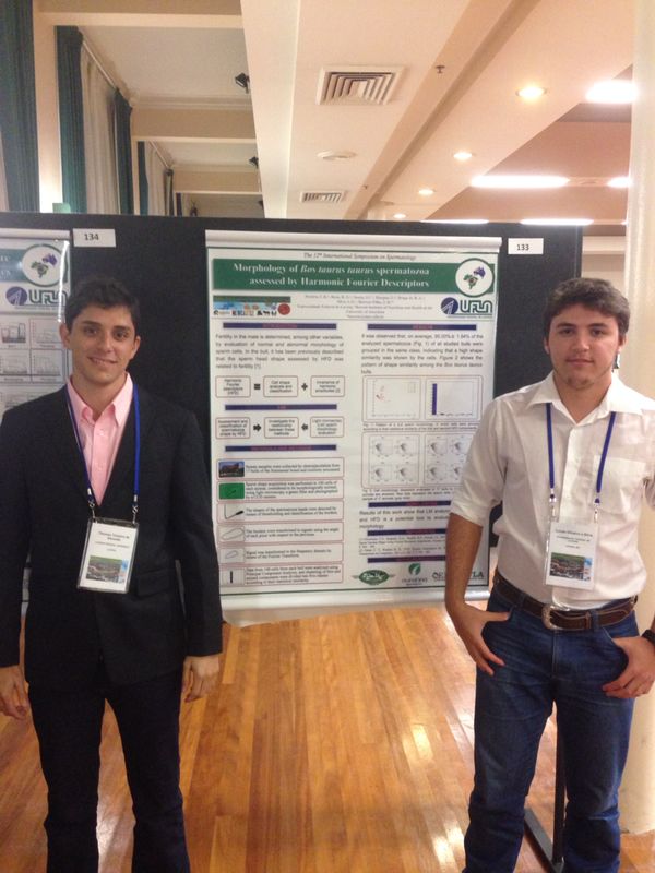 Os demais trabalhos foram apresentados no XXII International Symposium on Spermatology (Simpósio Internacional de Espermatologia), entre os dias 10 e 14 de agosto, na cidade de Newcastle, New South Wales. Os estudos Morphological distinct sperm cells subpopulations are present in Bos taurus indicus bulls ejaculates e Morphology of Bos taurus taurus spermatozoa assessed by Harmonic Fourier Descriptors foram desenvolvidos no Laboratório de Fisiopatologia da Reprodução Animal da UFLA, com o intuito de avaliar as subpopulações espermáticas e as características morfológicas do sêmen bovino. O primeiro trabalho foi apresentado por Thomaz e o outro, por Lucas.
