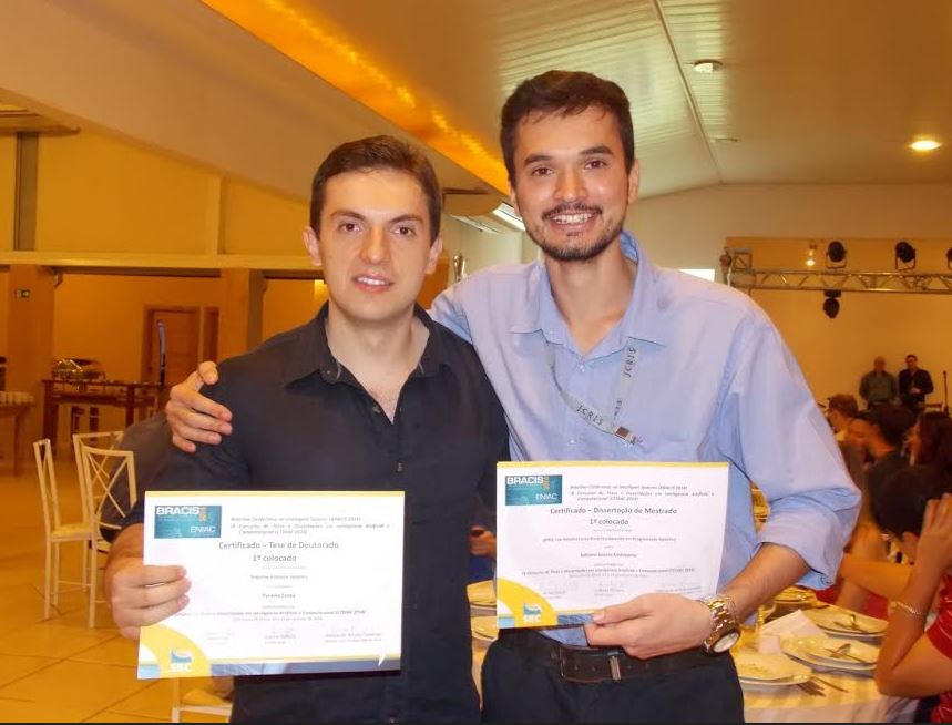 Prof. Daniel Furtado Leite (à esq.) e Adriano Soares Koschiyama (PUC-Rio), vencedor na categoria Dissertação (à dir.).[/caption]