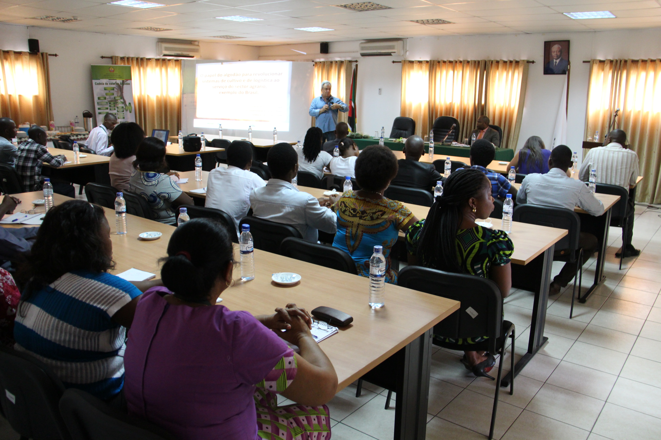 Professor Antônio Fraga ministra aula em Moçambique, dentro do projeto de Capacitação e Transferência de Tecnologia na Cultura do Algodão. Professor Pedro Castro Neto também participou do treinamento na África.[/caption]