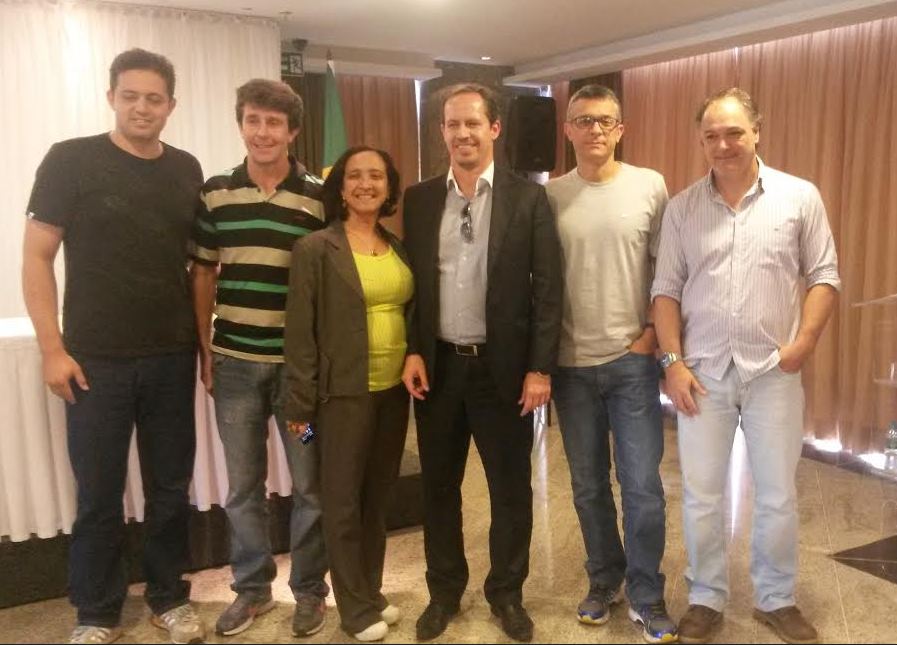 Da esq. p/ a dir.: Prof. Alessandro Teodoro Bruzi (DEF), Prof. Gustavo Vilela (E.E. Tiradentes e membro da EC13), Profª. Andrea Ewerton (SNEELIS), Ricardo Capelli (SNEELIS), Prof. Marcelo de Castro Teixeira (DEF) e Prof. Marco Antônio Gomes Barbosa (DEF).[/caption]