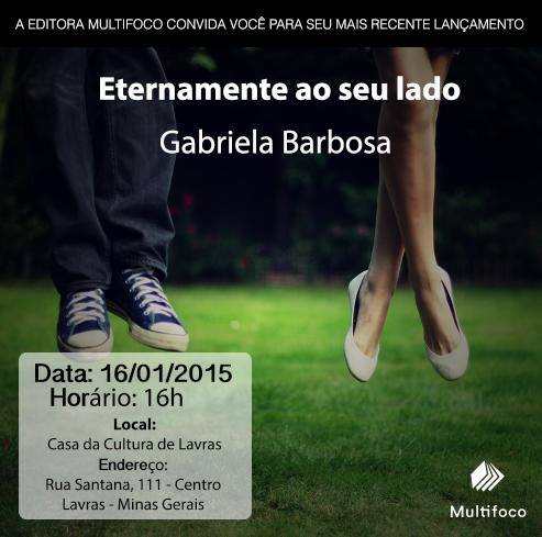 No dia 16 de janeiro a estudante do curso de Letras da Universidade Federal de Lavras (UFLA) Gabriela Barbosa lançará seu primeiro livro, intitulado “Eternamente ao seu lado”. A cerimônia oficial de lançamento ocorrerá na Casa de Cultura de Lavras, às 16h. A tarde será de autógrafos e venda de exemplares. O evento é aberto ao público.