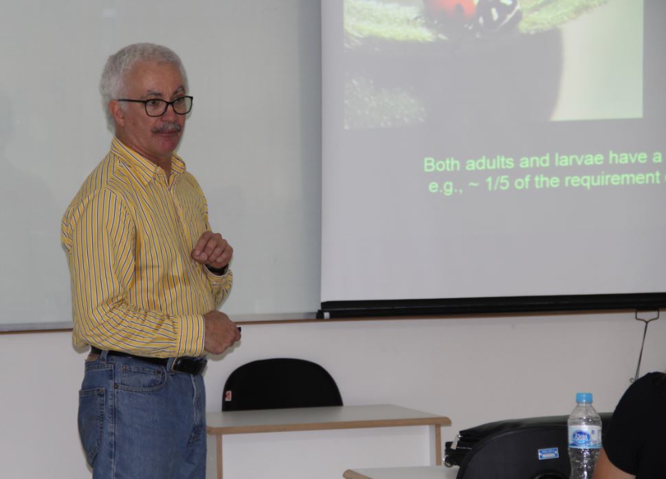 Professores e estudantes do DEN também tiveram a oportunidade de participar de duas palestras proferidas por Michaud, a primeira na terça-feira (10/2) e a segunda na quarta-feira (11/2). Ele falou sobre os avanços no manejo de pragas no estado do Kansas. No primeiro dia o tema foi “Sunflower Pest Management on the High Plains: Challenges to the IPM Paradigm”, seguido de “Pests of Sorghum on the High Plains with a Retrospective on Greenbugs” no segundo dia.