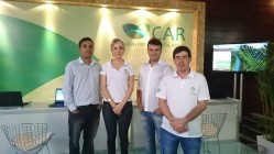 O diretor de Tecnologia da Informação do Laboratório de Laboratório de Estudos e Projetos em Manejo Florestal – Lemaf, Samuel Campos; acompanhado da equipe do Curso de Capacitação CapCar: Ewerton Carvalho, Karen Stephanie Mendes e Dalmo Arantes de Barros participam do evento.