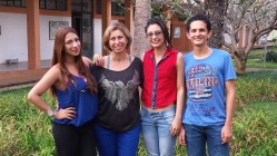 Da esq. p/ a dir.: Valerie Quintero Bedoya, professora Tânia, Yaidith Buitrago Hernández e Daniel Camilo Castaño Lopez[/caption]
