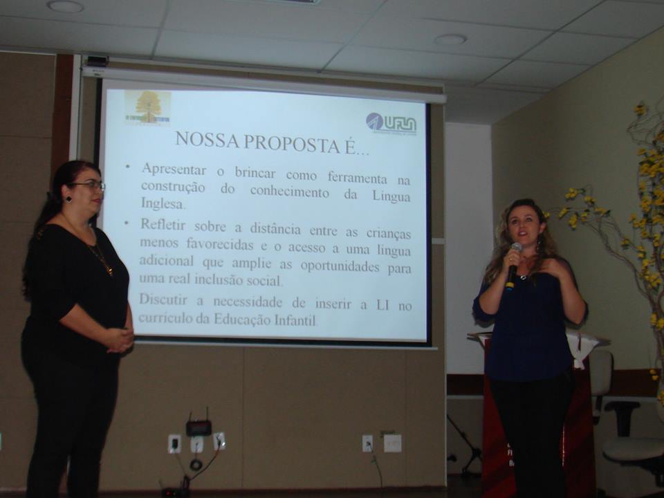 O trabalho foi desenvolvido sob a orientação da professora do Departamento de Ciências Humanas (DCH) Maria Eugênia Batista, que também participou do evento em Brasília. Além de destacar a importância da apresentação para a formação das estudantes, a professora explica a pertinência das discussões do papel de uma língua estrangeira no currículo da educação infantil. “A língua inglesa tem sido inserida no currículo do ensino infantil e dos anos iniciais do ensino fundamental em diversos municípios do Brasil. Como não existe legislação ou Parâmetros Curriculares Nacionais (PCN) a esse respeito, muitas vezes sua inserção carece de um embasamento pedagógico adequado e de um diálogo efetivo com a área de Letras.”