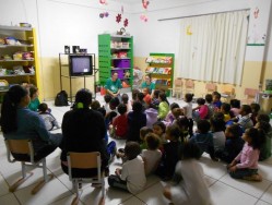 “Foi um dia muito produtivo e divertido. Com o apoio da diretora e de cinco professoras, os alunos da primeira e da segunda etapa da escola puderam participar de dinâmicas, desenhos, brincadeiras desenvolvidas com reutilização de recicláveis, vídeos educativos, entre outras atividades; tudo com o intuito de promover a conscientização ambiental”, relatam os “nesambeiros” que fizeram parte da primeira etapa do projeto.