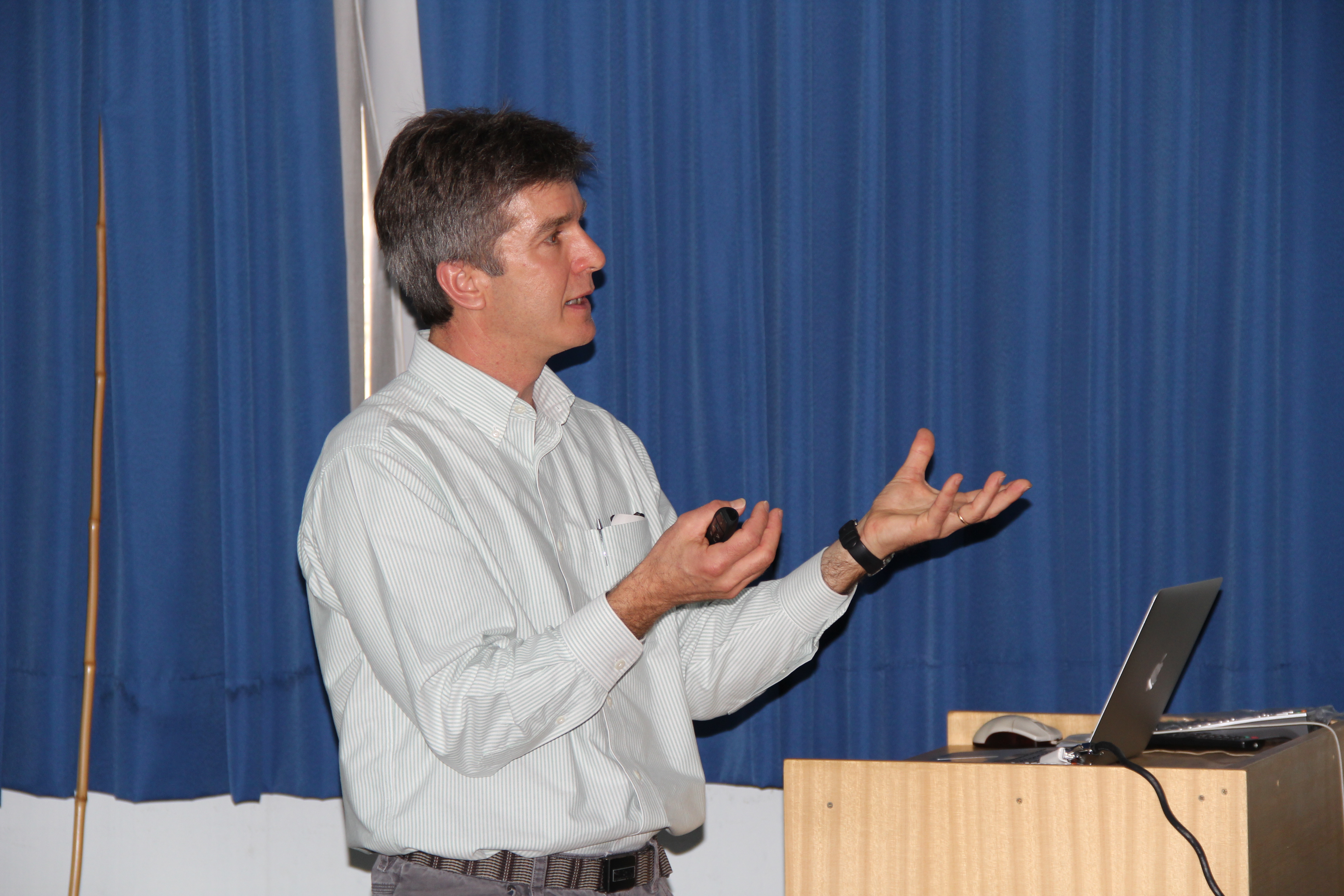 A palestra “Phosphorus chemistry: bridging model systems and soils” teve a finalidade de abordar como o fósforo reage no solo, maximizando, em termos de nutrientes, a absorção pelas culturas e minimizando os impactos ambientais. Durante a palestra, Dean Hesterberg apresentou como o problema pode ser abordado fazendo a espectroscopia molecular, para que se possa entender o mecanismo fundamental pelo qual os elementos químicos se ligam aos solos.