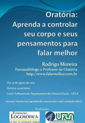 Rodrigo Moreira, fonoaudiólogo e professor de oratória, realizará na Universidade Federal de Lavras (UFL), no dia 31 de agosto, o curso: Aprenda a controlar seu corpo e seus pensamentos para falar melhor.