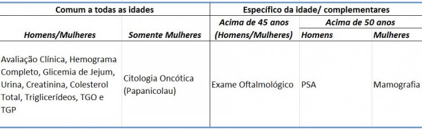 São exames clínicos e laboratoriais importantes para a identificação de riscos potenciais capazes de comprometer sua qualidade de vida. Pequenas alterações na saúde, que passam geralmente despercebidas, podem ter consequências indesejáveis: um discreto aumento na glicemia pode evoluir para diabetes e um quadro de pré-hipertensão pode chegar à hipertensão de fato.