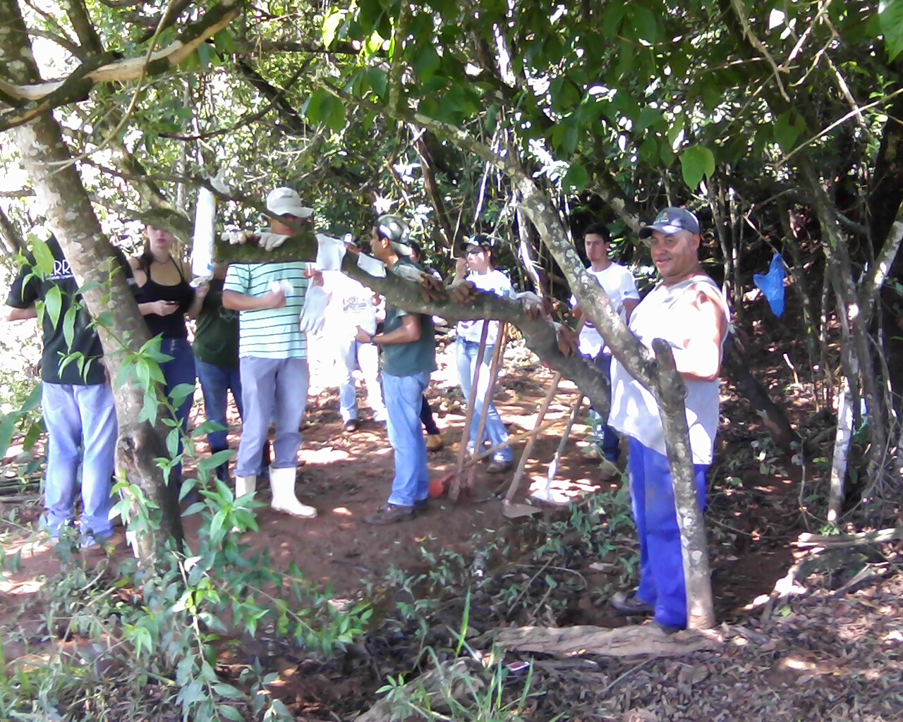Estudantes da UFLA realizam os cinco passos para revitalização e proteção de nascente.[/caption]