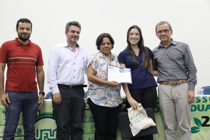 A coordenadora do Programa Bic Júnior na UFLA, professora Débora Cristina de Carvalho, estava presente para homenagear o trabalho que se destacou entre aqueles apresentados por membros do BIC Júnior. Intitulado “Caracterização anatômica de fibras do pseudocaule da musa sp”, o trabalho tem como autores Williano Rezende do Carmo Souza, Bárbara Maria Ribeiro Guimarães, Ellison Rosário de Oliveira, Mário Vanoli Scatolino e Gustavo Henrique Denzin Tonoli.