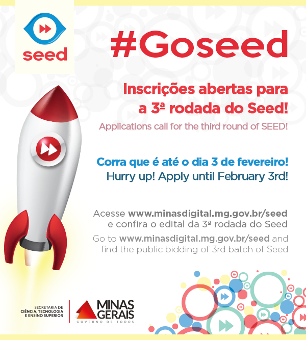 Os interessados devem se inscrever até o dia 3 de fevereiro, pelo endereço www.minasdigital.mg.gov.br/seed. Nesta nova edição, as startups selecionadas receberão incentivos financeiros e disponibilização de escritório compartilhado, entre outros benefícios.