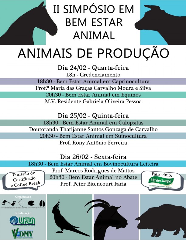 II Simpósio de Bem-Estar Animal da UFLA terá como tema Animais de Produção – 24 a 26/2