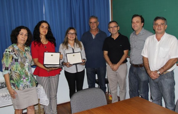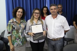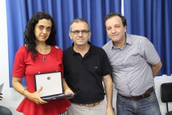 A professora Rafaela Nóbrega é homenageada pela atuação permanente na parceria UFLA e UFPI. Na foto, os professores José Maria de Lima e Carlos Alberto Silva, coordenadores do PPGCS na época em que o Procad teve início, em 2009.[/caption]