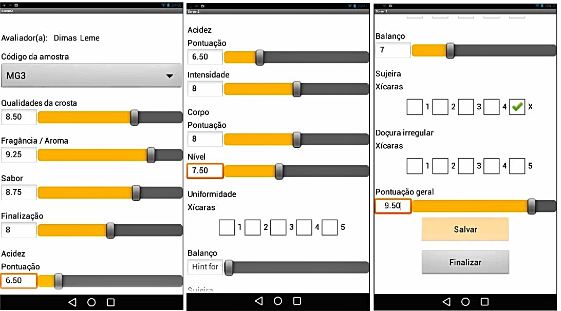 Janelas da aplicação de Análise Sensorial de Cafés Especiais[/caption]