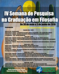 IV Semana de Pesquisa na Graduação em Filosofia inicia na próxima segunda (30/5)