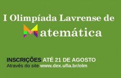 O Setor de Matemática do Departamento de Ciências Exatas (DEX) da UFLA criou o projeto Olimpíada Lavrense de Matemática (OLM), que teve inscrições abertas no dia 1º de julho. Professores desta disciplina podem inscrever turmas de alunos do 6º ao 9º ano do Ensino Fundamental e de todo o Ensino Médio, de escolas públicas e particulares de Lavras. As inscrições, gratuitas, devem ser feitas no site: www.dex.ufla.br/olm. O período de inscrição vai até 21 de agosto.